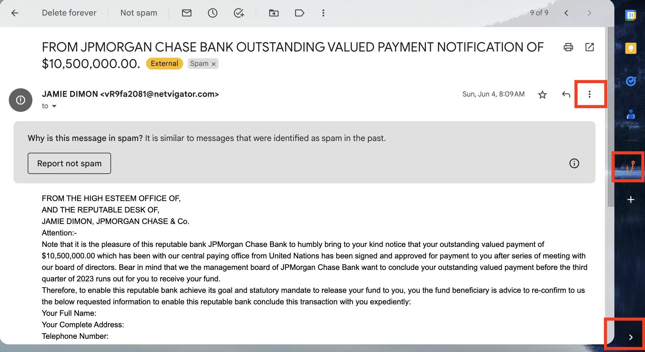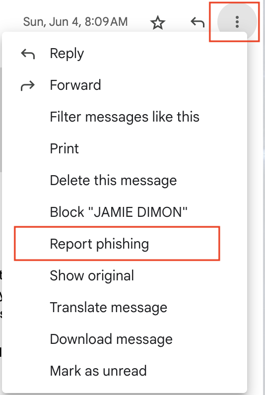 Thanks for being vigilant and reporting emails which could be harmful to OMCA. There are two easy ways to report Phishing, both of them alert IT and Google.